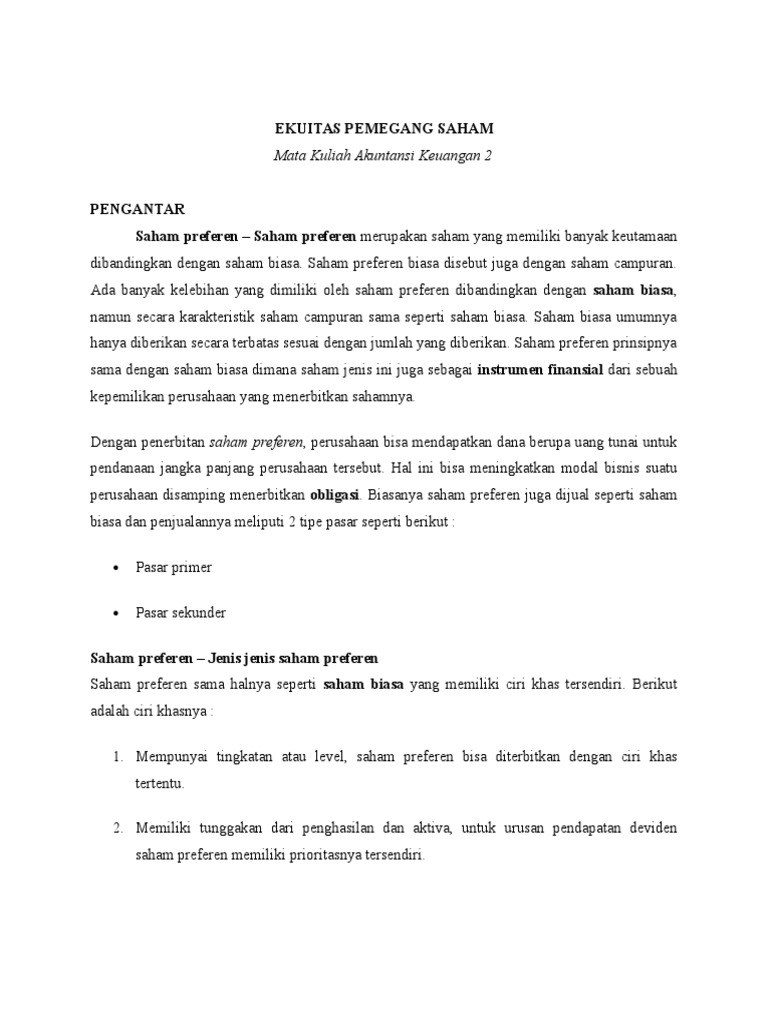 Ekuitas Pemegang Saham Mata Kuliah Akuntansi Keuangan 2