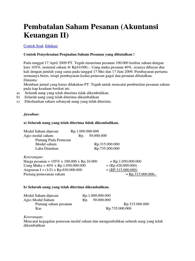 Contoh Soal Modal Saham Dan Jawabannya Berbagai Contoh
