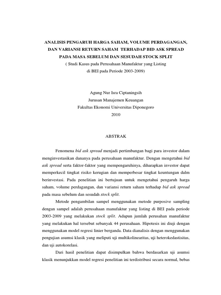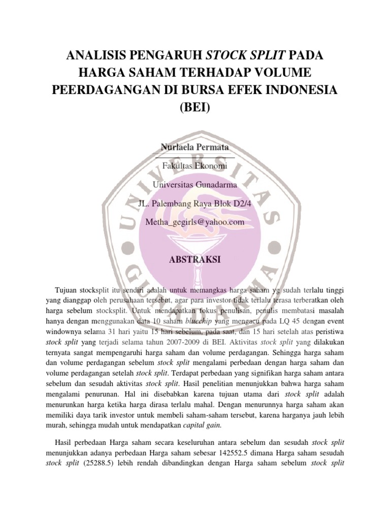 (PDF) ANALISIS STOCK SPLIT TERHADAP HARGA SAHAM DAN VOLUME