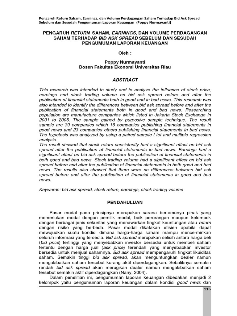 Dengan kata lain, setiap kegiatan penjualan yang terjadi dan ditransaksikan di bursa saham, itulah yang disebut tva. Pengaruh volume perdagangan saham, frekuensi perdagangan saham, volatilitas harga saham dan kapitalisasi pasar terhadap return saham.