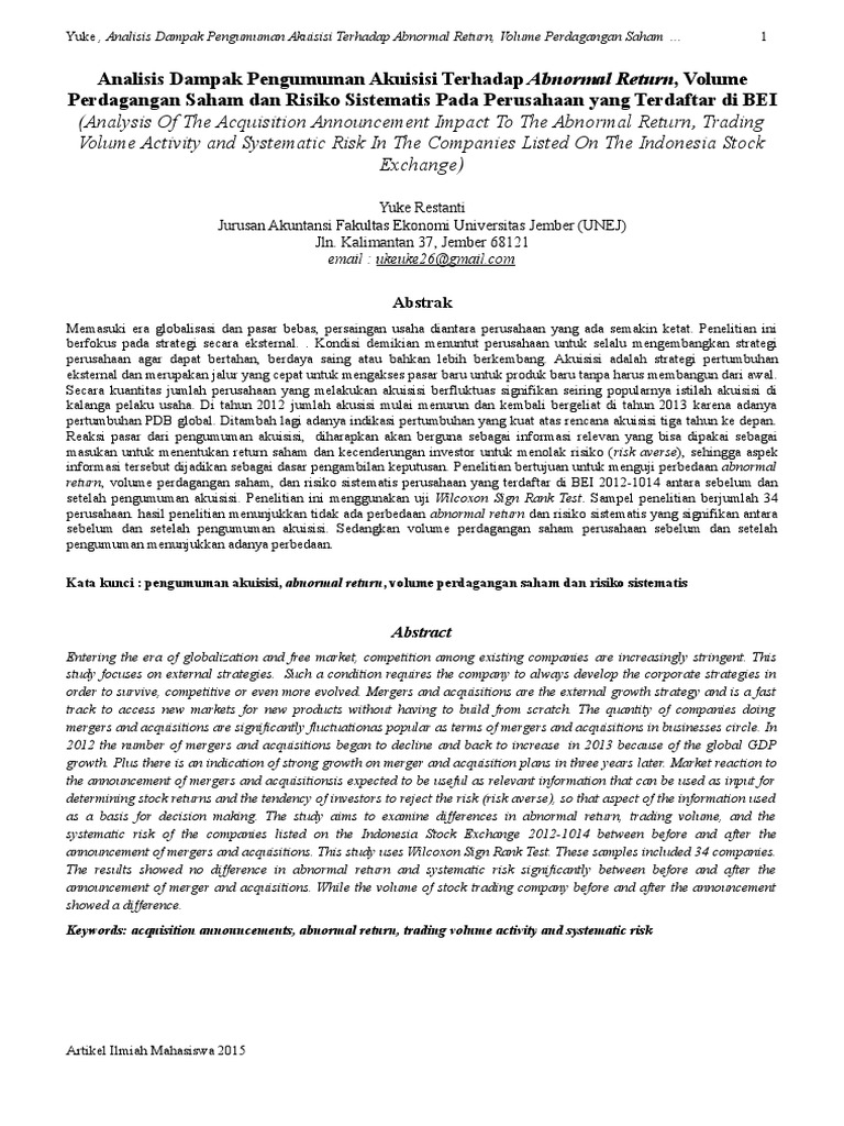 Analisis Dampak Pengumuman Akuisisi Terhadap Abnormal